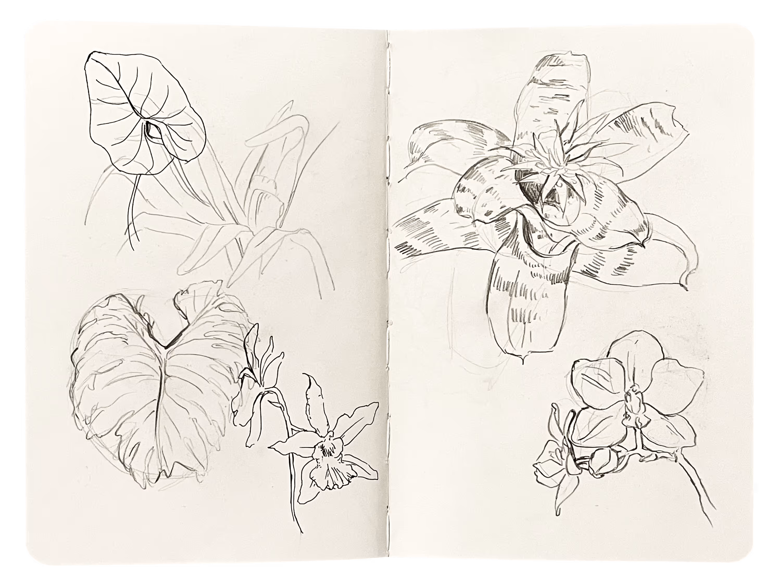 My favourite traditional media is graphite, pen, ink, and watercolour. I also like ballpoint pen, gouache, and painting digitally as well.